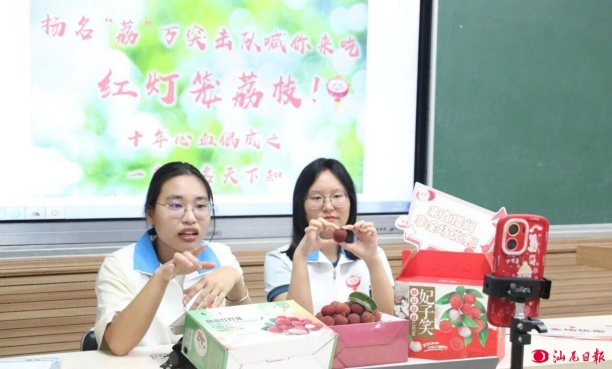 華南師范大學(xué)揚名“荔”萬突擊隊為東涌鎮(zhèn)寶樓村紅燈籠荔枝直播帶貨。