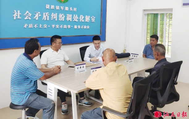 工作人員在黨群服務(wù)中心調(diào)解村民矛盾糾紛。