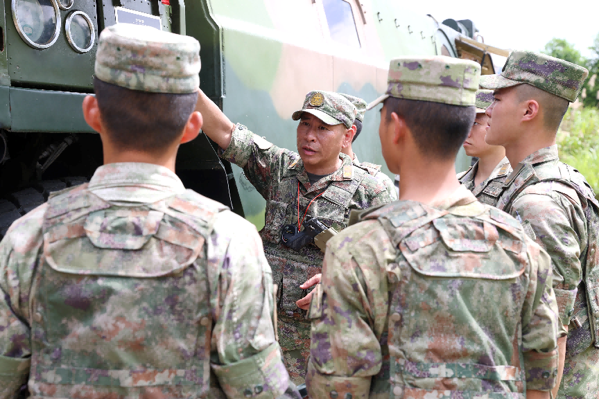 ↑何賢達(dá)(中)為新號手講解裝備操作技巧。程李航 攝