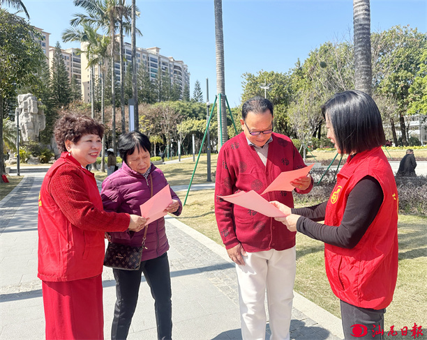 巾幗志愿者在公園開(kāi)展“綠美宣傳進(jìn)萬(wàn)家”活動(dòng)。