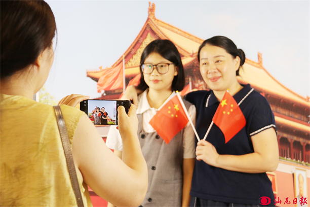 10月1日上午,海豐縣黨群服務(wù)中心熱鬧非凡,充滿歡聲笑語。不到9點(diǎn),由創(chuàng)意背景板構(gòu)成的“主題攝影區(qū)”前,已陸續(xù)有市民前來排隊(duì)。他們手持小國旗,在主題背景前調(diào)整姿勢,等待相機(jī)定格與國同慶的瞬間。“平時工作忙,很少專門帶父母孩子拍照。這里布置得很有氣氛,趁國慶來拍張全家福,感覺特別有意義?!睅е患宜目谇皝淼年愊壬莱隽嗽S多參與者的心聲。