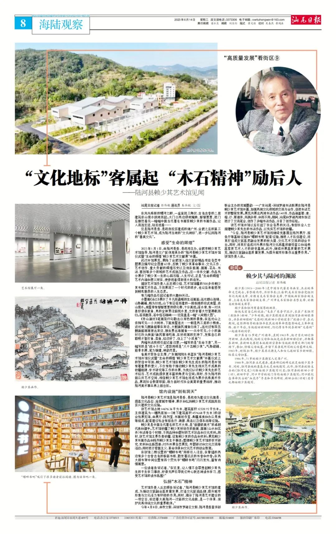 這是陸河縣委、縣政府投資建成的繼廣州、合肥之后的第三個賴少其藝術(shù)館,成為陸河當?shù)氐摹拔幕貥恕保M一步弘揚陸河的“善美文化”。