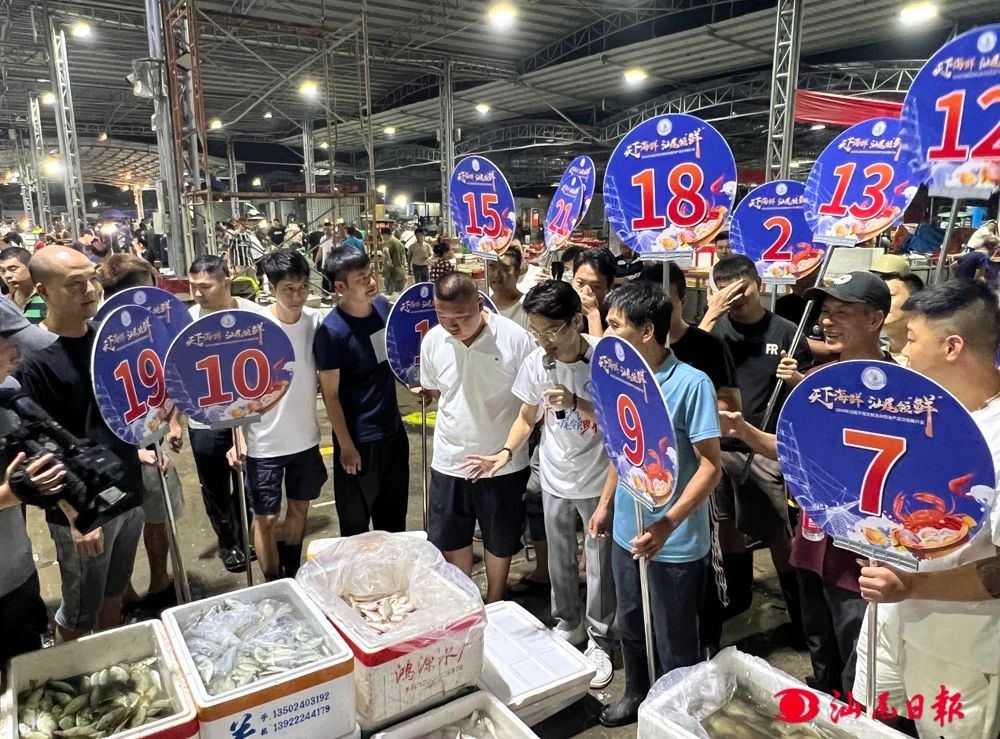 “4元!”“5元!”“5.5元!”……8月20日凌晨,隨著深海捕撈漁船的滿載歸來,一場(chǎng)熱鬧非凡的頭艙漁獲拍賣活動(dòng)隨之開始,在眾人的矚目下,見證這寓意吉祥、象征富饒的頭艙漁獲花落誰家。主持人一邊開價(jià),一邊闡述著頭艙漁獲的意義,引得現(xiàn)場(chǎng)人員一陣歡呼。競(jìng)拍者們更是“摩拳擦掌”,競(jìng)價(jià)聲一浪高過一浪。每一次報(bào)價(jià)的提高,都伴隨著人群的驚嘆與熱烈掌聲。工作人員忙前顧后,在現(xiàn)場(chǎng)做好秩序維護(hù)、后勤保障各項(xiàng)工作?!拔覀兲崆白龊酶黜?xiàng)工作準(zhǔn)備,更好地服務(wù)漁民、服務(wù)游客,讓更多人來到汕尾、愛上汕尾?!背菂^(qū)文廣旅體局有關(guān)負(fù)責(zé)人表示。