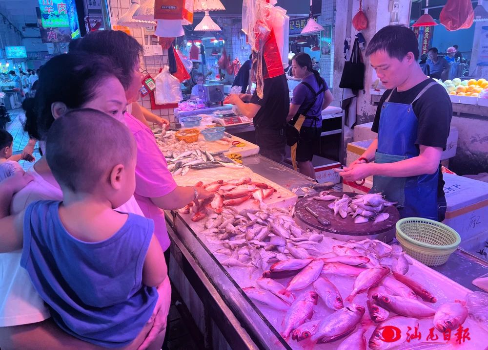 在市區(qū)的一些農(nóng)貿(mào)市場(chǎng)內(nèi),琳瑯滿目、各式各樣的海鮮擺在攤位供市民游客挑選。據(jù)一商戶介紹,開漁后,海產(chǎn)品大量上市,價(jià)格實(shí)惠,如休漁期間,小的九節(jié)蝦都要賣到60至65元/斤,開漁后,巴掌大的九節(jié)蝦的價(jià)格才55元/斤左右。而本地人喜歡吃的紅目鰱、帶魚等,價(jià)格下降了20%至25%左右。“開漁以來,海鮮品類更多了,選擇性更多,部分常見的海產(chǎn)品價(jià)格則有所浮動(dòng)。”一攤檔老板告訴記者,我國(guó)東海海域要到9月份才結(jié)束休漁期,目前南海海域已開漁,疊加我市盛產(chǎn)帶魚,所以在短期內(nèi)我市帶魚價(jià)格是全國(guó)的帶魚價(jià)格風(fēng)向標(biāo)。除了受品質(zhì)、大小、鮮活程度及貨源穩(wěn)定等方面影響外,還受到了節(jié)日的影響?!斑^段時(shí)間就是中秋節(jié)了,比如購(gòu)買帶魚的人相對(duì)多了,價(jià)格可能會(huì)有所提升?!痹撁习甯嬖V記者。