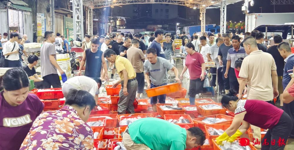 8月20日凌晨,開漁后首批歸來的深海捕撈漁船陸續(xù)回港。在市區(qū)海產(chǎn)品貿(mào)易市場(chǎng),吆喝聲、討價(jià)還價(jià)聲、車輛馬達(dá)轟鳴聲演奏出一曲“交響樂”,市場(chǎng)內(nèi)燈火通明,一艘艘漁獲滿倉的深海捕撈漁船整齊地靠在岸邊,漁民們正忙著卸載捕獲而歸的各類水產(chǎn)品,沉寂許久的漁港恢復(fù)了往日的繁榮和喧囂。