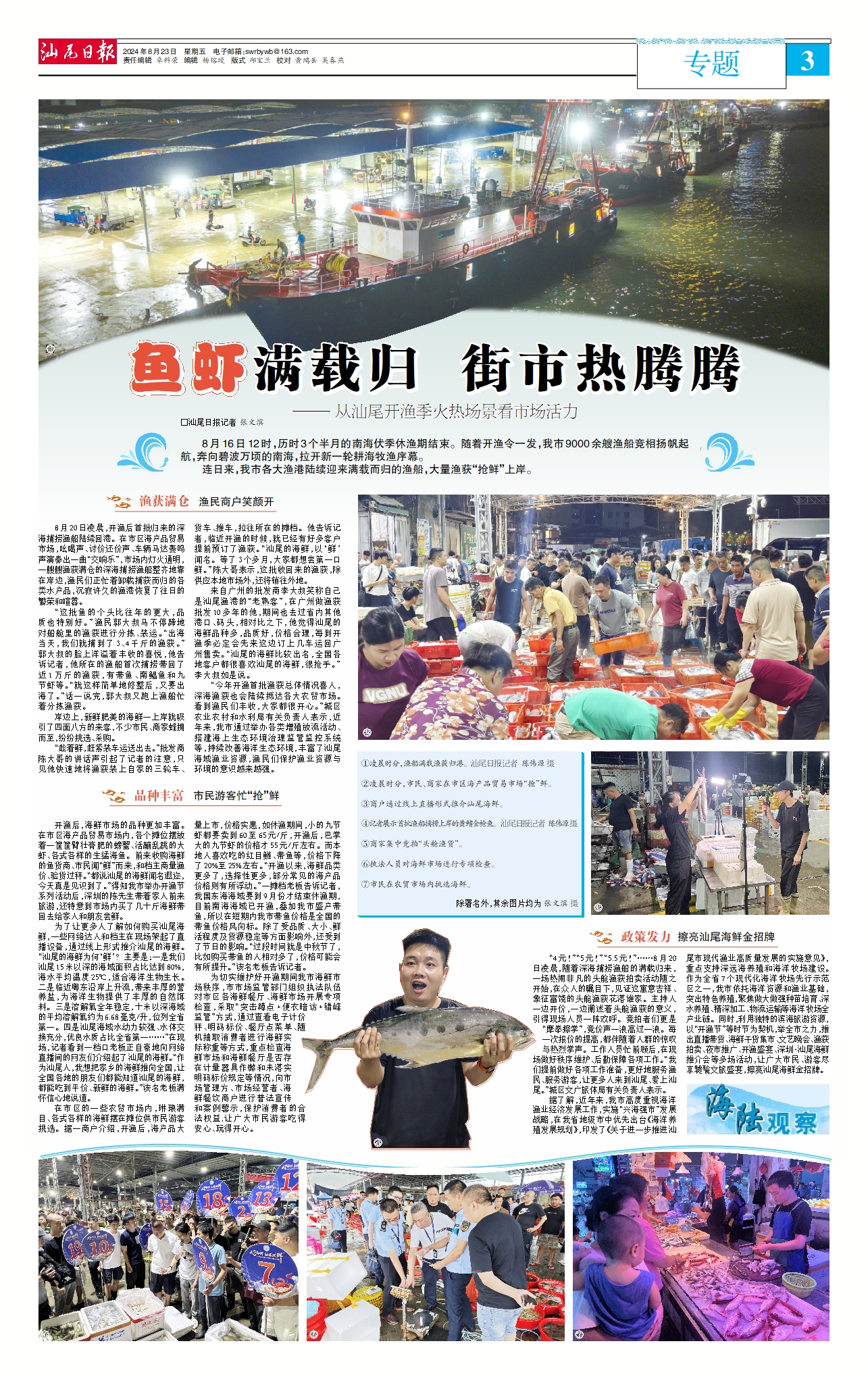 “今年開漁首批漁獲總體情況喜人,深海漁獲也會(huì)陸續(xù)抵達(dá)各大農(nóng)貿(mào)市場(chǎng)??吹綕O民們豐收,大家都很開心。”城區(qū)農(nóng)業(yè)農(nóng)村和水利局有關(guān)負(fù)責(zé)人表示,近年來,我市通過舉辦各類增殖放流活動(dòng)、搭建海上生態(tài)環(huán)境治理監(jiān)管監(jiān)控系統(tǒng)等,持續(xù)改善海洋生態(tài)環(huán)境,豐富了汕尾海域漁業(yè)資源,漁民們保護(hù)漁業(yè)資源與環(huán)境的意識(shí)越來越強(qiáng)。