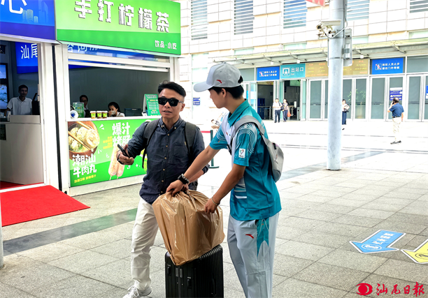 志愿者在汕尾高鐵站為賽事相關(guān)人員提供站內(nèi)指引。