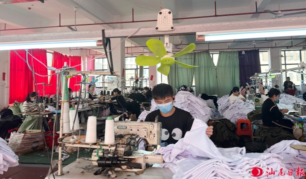 河口鎮(zhèn)劍門村大力發(fā)展富民興村制衣產(chǎn)業(yè),圖為車間工人進(jìn)行制衣生產(chǎn)。