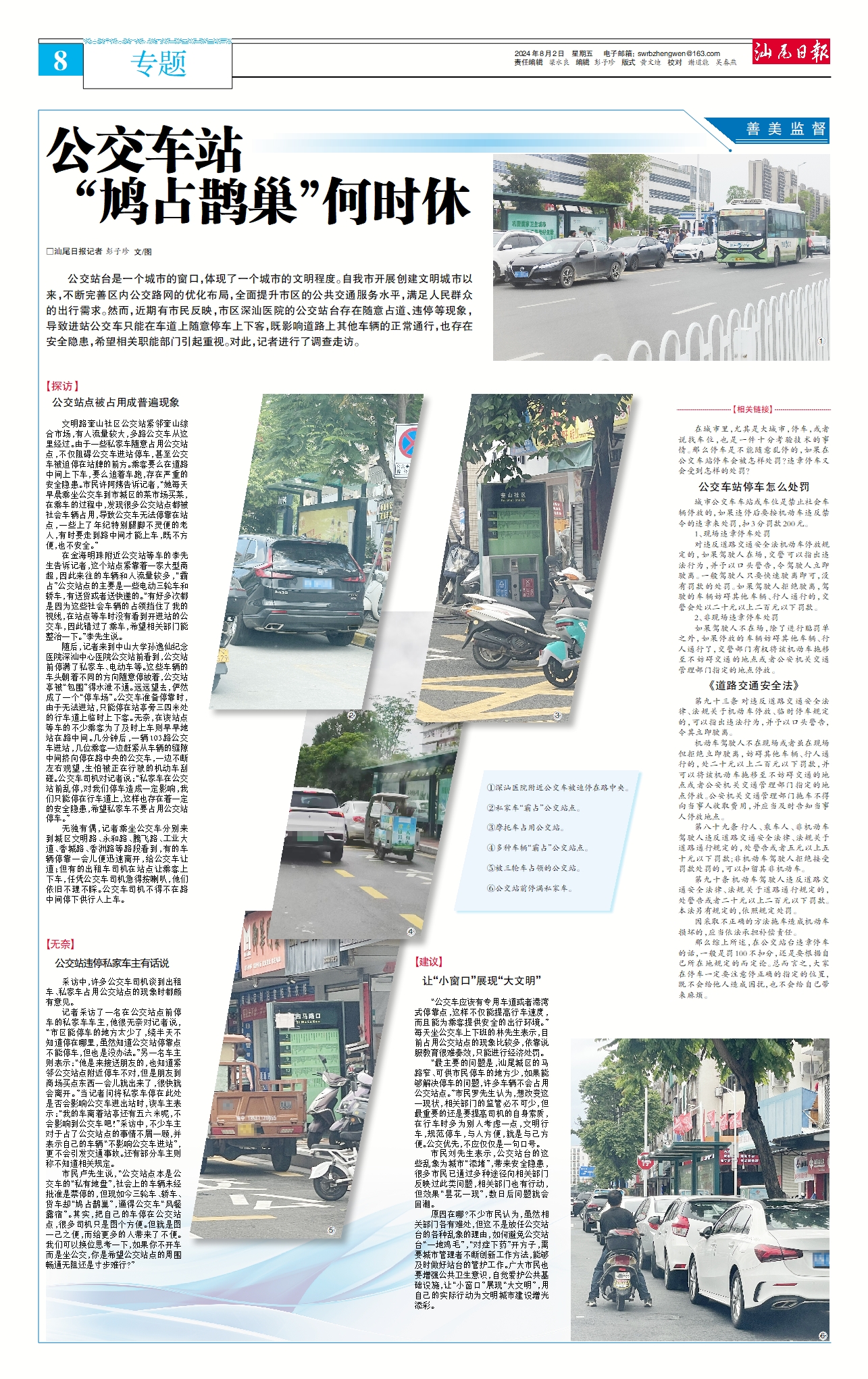 公交站臺是一個城市的窗口,體現(xiàn)了一個城市的文明程度。自我市開展創(chuàng)建文明城市以來,不斷完善區(qū)內(nèi)公交路網(wǎng)的優(yōu)化布局,全面提升市區(qū)的公共交通服務(wù)水平,滿足人民群眾的出行需求。然而,近期有市民反映,市區(qū)深汕醫(yī)院的公交站臺存在隨意占道、違停等現(xiàn)象,導(dǎo)致進(jìn)站公交車只能在車道上隨意停車上下客,既影響道路上其他車輛的正常通行,也存在安全隱患,希望相關(guān)職能部門引起重視。對此,記者進(jìn)行了調(diào)查走訪。