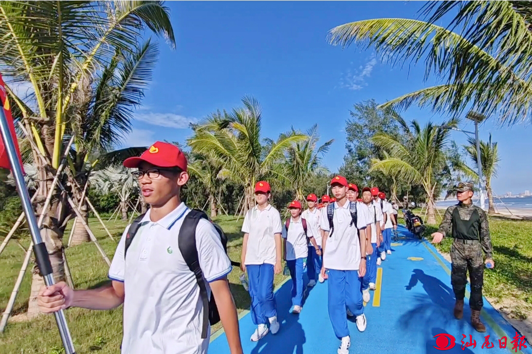 近日,華南師大附中汕尾學(xué)校在軍訓(xùn)期間組織高一年級(jí)全體學(xué)生開展沿海邊碧道8公里的徒步拉練活動(dòng)。本次拉練以“徒步山海碧道,錘煉意志品質(zhì)”為主題,突破傳統(tǒng)軍訓(xùn)模式,將體能訓(xùn)練與海洋文化、城市發(fā)展相結(jié)合,引導(dǎo)學(xué)生用腳步丈量汕尾美麗的海洋岸線,感受“百千萬工程”推動(dòng)下高質(zhì)量發(fā)展的城市新貌。圖為軍訓(xùn)徒步拉練活動(dòng)現(xiàn)場。