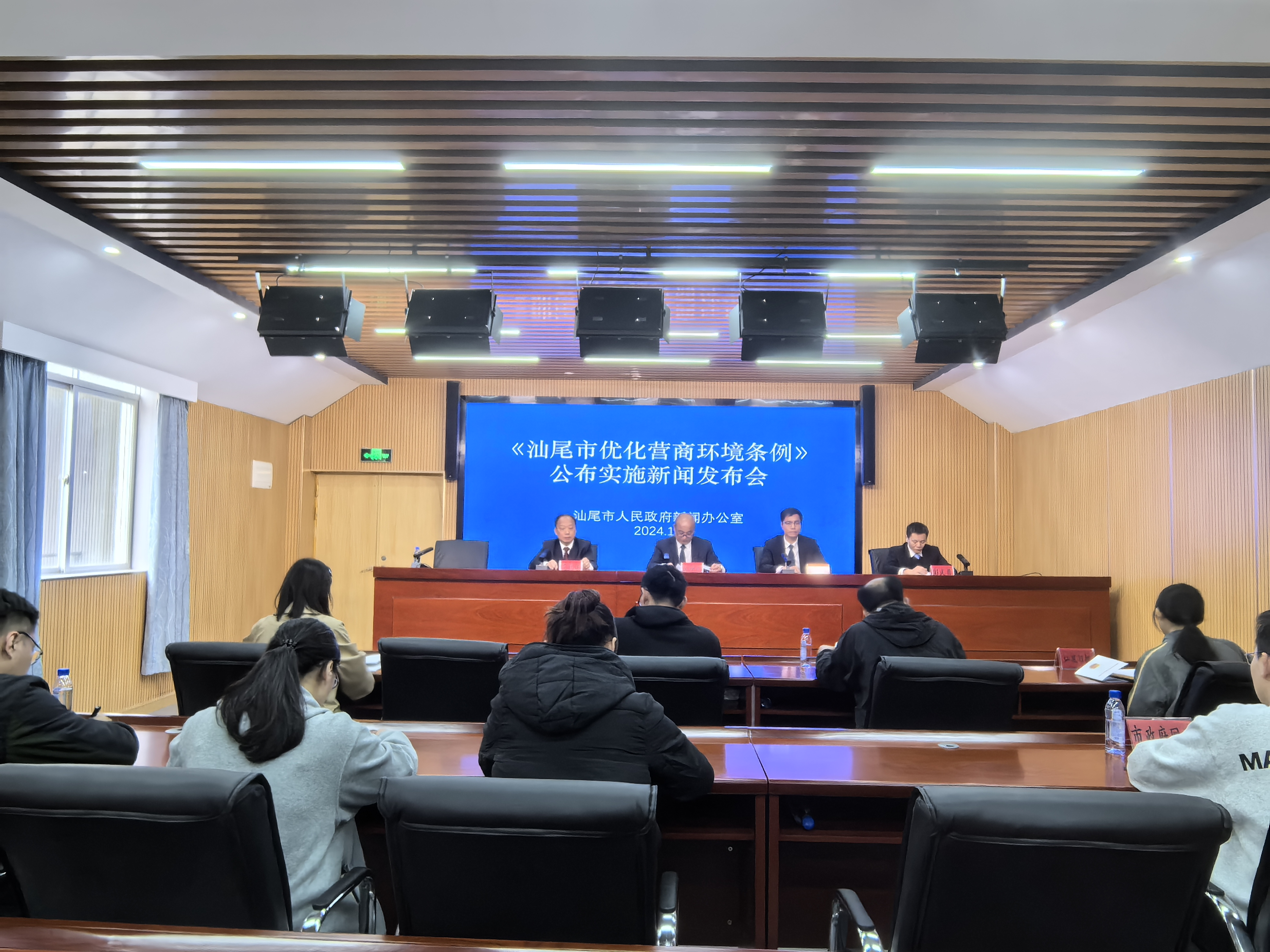 2024年12月23日,汕尾市人民政府新聞辦公室舉辦《汕尾市優(yōu)化營(yíng)商環(huán)境條例》公布實(shí)施新聞發(fā)布會(huì),通報(bào)制定條例的立法背景、立法過程及主要內(nèi)容以及我市優(yōu)化營(yíng)商環(huán)境工作現(xiàn)狀及貫徹實(shí)施條例的計(jì)劃安排,并回答大家關(guān)心關(guān)注的問題。本場(chǎng)新聞發(fā)布會(huì)由中共汕尾市委宣傳部副部長(zhǎng)、汕尾市人民政府新聞辦公室主任陳欣昕主持。