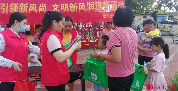 志愿者在第八社區(qū)僑安里村頭小公園開展移風易俗宣傳活動。