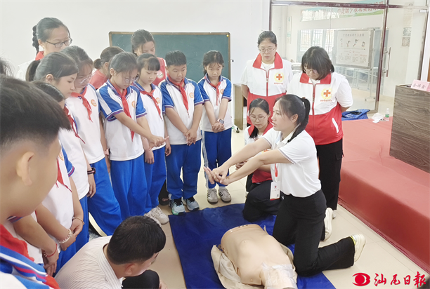 近日,海豐縣紅十字會聯(lián)合團(tuán)縣委、公平鎮(zhèn)等單位在公平鎮(zhèn)中心小學(xué)開展防溺水及應(yīng)急救護(hù)知識培訓(xùn)?;顒又校驹刚呦?qū)W生們講解防溺水、心肺復(fù)蘇、鼻出血等急救知識,指導(dǎo)參與心肺復(fù)蘇術(shù)的實(shí)踐操作,增強(qiáng)師生風(fēng)險防范意識和提升應(yīng)急救護(hù)技能。圖為志愿者為學(xué)生們講解心肺復(fù)蘇術(shù)要領(lǐng)。